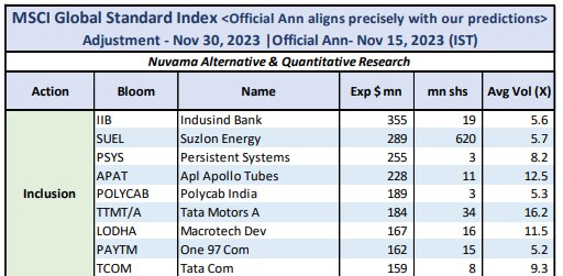 With Thanks Reference to: https://www.businesstoday.in/markets/stocks/story/suzlon-energy-indusind-paytm-shares-msci-inclusion-may-bring-up-to-355-million-inflows-405734-2023-11-15