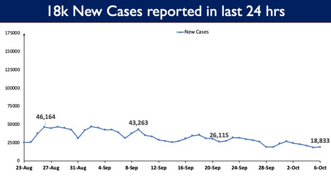 New Delhi: The Ministry of Health and Family Welfare on Wednesday (October 6, 2021) morning informed that India reported 18,833 new COVID-19 cases in the last 24 hours and that the active count has now dropped to its lowest in nearly 7 months. The country’s active coronavirus caseload currently stands at 2,46,687, which is the lowest in 203 days.