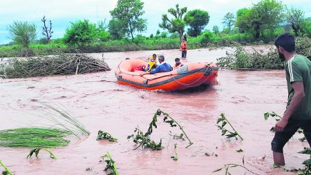 ਸੂਬੇ ਵਿਚ ਇੱਕੋ ਰਾਤ ’ਚ ਹੋਈ 270 ਐੱਮਐੱਮ ਵਰਖਾ ਨੇ ‘ਫਲੱਡ ਮਾਡਲ’ ਹੀ ਤਹਿਸ-ਨਹਿਸ ਕਰ ਦਿੱਤਾ। ਆਮ ਤੌਰ ’ਤੇ ਜੁਲਾਈ ਵਿਚ ਔਸਤਨ 170 ਐੱਮਐੱਮ ਮੀਂਹ ਦਾ ਪੈਟਰਨ ਹੈ। ਮੌਸਮ ਵਿਭਾਗ ਨੇ ਭਲਕੇ ਮੀਂਹ ਦੀ ਪੇਸ਼ੀਨਗੋਈ ਕੀਤੀ ਹੈ ਅਤੇ 13 ਜੁਲਾਈ ਨੂੰ ਮੁੜ ਮੀਂਹ ਪੈਣ ਦਾ ਅਨੁਮਾਨ ਹੈ। ਤਿੰਨ ਦਿਨਾਂ ਤੋਂ ਪੈ ਰਹੇ ਮੀਂਹ ਨਾਲ ਸ਼ਹਿਰਾਂ ਦੇ ਨਿਕਾਸੀ ਪ੍ਰਬੰਧ ਪੂਰੀ ਤਰ੍ਹਾਂ ਡਗਮਗਾ ਗਏ ਹਨ। ਇਸੇ ਦੌਰਾਨ ਪੰਜਾਬ ਪੁਲੀਸ ਨੂੰ ਅਲਰਟ ਕੀਤਾ ਗਿਆ ਹੈ ਜਦੋਂ ਕਿ ਗ੍ਰਹਿ ਵਿਭਾਗ ਨੇ ਮੁਹਾਲੀ ਅਤੇ ਪਟਿਆਲਾ ਜ਼ਿਲ੍ਹੇ ਵਿਚ ਬਣੇ ਨਾਜ਼ੁਕ ਹਾਲਾਤ ਦੇ ਮੱਦੇਨਜ਼ਰ ਫ਼ੌਜ ਤੋਂ ਮਦਦ ਮੰਗੀ ਹੈ। ਸਤਲੁਜ ਦਰਿਆ ’ਚ ਪਾਣੀ ਦਾ ਪੱਧਰ ਵਧਣ ਕਰਕੇ ਬੇਟ ਤੇ ਮੰਡ ਦਾ ਖੇਤਰ ਪੂਰੀ ਤਰ੍ਹਾਂ ਖ਼ਤਰੇ ਹੇਠ ਆ ਗਏ ਹਨ। ਰੋਪੜ, ਨਵਾਂਸ਼ਹਿਰ ਅਤੇ ਮੁਹਾਲੀ ਜ਼ਿਲ੍ਹਿਆਂ ਵਿਚ ਭਲਕੇ ਸਕੂਲਾਂ ਵਿਚ ਛੁੱਟੀ ਐਲਾਨ ਦਿੱਤੀ ਗਈ ਹੈ। ਪੰਜਾਬੀ ’ਵਰਸਿਟੀ ਨੇ ਸੋਮਵਾਰ ਨੂੰ ਹੋਣ ਵਾਲੇ ਸਾਰੇ ਪੇਪਰ ਮੁਲਤਵੀ ਕਰ ਦਿੱਤੇ ਹਨ। ਇਸੇ ਦੌਰਾਨ ਪੰਜਾਬ ਸਕੂਲ ਸਿੱਖਿਆ ਬੋਰਡ ਨੇ ਭਲਕੇ ਸੋਮਵਾਰ ਨੂੰ ਸੂਬੇ ਦੇ ਸਾਰੇ ਪ੍ਰੀਖਿਆ ਕੇਂਦਰਾਂ ਵਿੱਚ ਹੋਣ ਵਾਲੀ ਪੰਜਵੀਂ ਸ਼੍ਰੇਣੀ ਦੀ ਵਾਤਾਵਰਨ ਸਿੱਖਿਆ ਅਤੇ ਅੱਠਵੀਂ ਦੀ ਸਾਇੰਸ ਵਿਸ਼ੇ ਦੀ ਰੀ-ਅਪੀਅਰ ਪ੍ਰੀਖਿਆ ਅਗਲੇ ਹੁਕਮਾਂ ਤੱਕ ਮੁਲਤਵੀ ਕਰ ਦਿੱਤੀ ਹੈ। ਖਰੜ ਵਿਚ ਇੱਕ ਰਿਹਾਇਸ਼ੀ ਇਮਾਰਤ ਡਿੱਗ ਗਈ ਹੈ ਜਦੋਂ ਕਿ ਰੋਪੜ ਜ਼ਿਲ੍ਹੇ ’ਚ ਇੱਕ ਕੇਂਦਰੀ ਸਕੂਲ ਦੀ ਇਮਾਰਤ ਨੂੰ ਵੀ ਨੁਕਸਾਨ ਪੁੱਜਾ ਹੈ। ਕੁਰਾਲੀ ਵਿਚ ਮੀਂਹ ਦਾ ਪਾਣੀ ਘਰਾਂ ਵਿਚ ਦਾਖ਼ਲ ਹੋ ਗਿਆ।