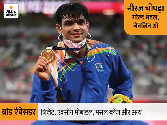 नीरज चोपड़ा की ब्रांड वैल्यू में 10 गुना बढ़ोतरी देखने को मिली है। नीरज को मैनेज करने वाली फर्म JSW के CEO मुस्तफा गौस का कहना है कि ये बढ़ोतरी उनकी मेल और नॉन क्रिकेटिंग अचीवमेंट की वजह से हुई है। अभी तक मार्केट में या तो क्रिकेटरों का दबदबा था या पीवी सिंधु, मैरी कॉम और सानिया मिर्जा जैसी महिला एथलीट्स का। नीरज ने इस धारणा को तोड़ा है। एक्सपर्ट्स का अनुमान है कि नीरज की सालाना ब्रांड एंडोर्समेंट फीस करीब ढाई करोड़ रुपए है। ओलिंपिक के पहले ये 20-30 लाख होती थी।
