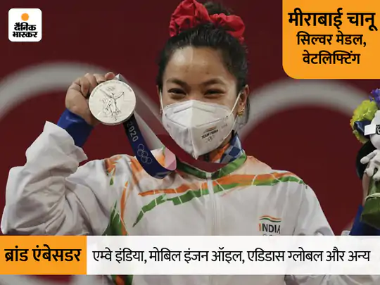 मीराबाई चानू को मैनेज करने वाली कंपनी IOS स्पोर्ट्स एंड एंटरटेनमेंट के चीफ ऑपरेटिंग ऑफिसर राहुल त्रेहन का कहना है कि मेडल जीतने के बाद चानू के पास कई ब्रांड्स के ऑफर हैं। इनमें स्टील, इंश्योरेंस, बैंकिंग, एडुटेक, एनर्जी ड्रिंक्स और ऑटोमोबाइल जैसे सेक्टर शामिल हैं। फिलहाल चानू ने एम्वे इंडिया, मोबिल इंजन ऑइल, एडिडास ग्लोबल के साथ करार किया है। त्रेहन के मुताबिक चानू की मौजूदा एंडोर्समेंट फीस 1 करोड़ रुपए सालाना से ज्यादा है। टोक्यो ओलिंपिक से पहले ये 10 लाख के आसपास थी।